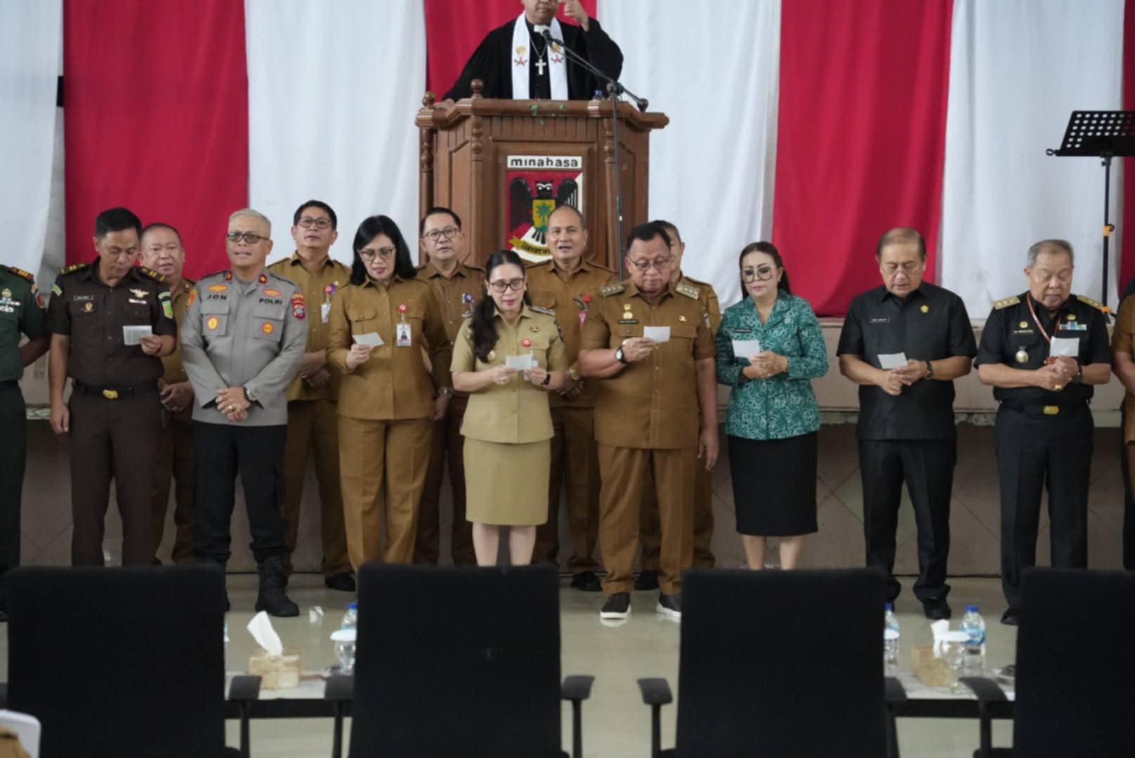 Turut hadir Wakil Bupati Vanda Sarundajang, Ketua DPRD Robby Longkutoy, perwakilan Kejari Tondano, Wakapolres Minahasa ,Kodim 1302 Minahasa diwakili Danramil Eris, Sekdakab Lynda Watania dan jajaran, Ketua TP PKK Ny. Martina Dondokambey – Lengkong, Direktur IPDN, BKSAUA Pemerintah Kabupaten serta ASN dan PPPK.